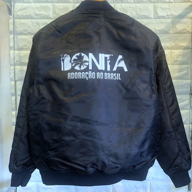 秋冬から春先まで大活躍のMA-1フライトジャケットです。 MA-1特有のミリタリー感を残しながら、BONITAらしく街でお洒落に着られるようなロゴをデザインしました。 中綿入りなので暖かく撥水防風のあるポリエステル100%の生地となってます。 シンプルにTシャツやカットソーはもちろん、パーカーやニットと合わせても決まります。 素材:ポリエステル 100% サテン 〈裏地〉ポリエステル100% 〈保温材〉ポリエステル100% 〈リブ〉ポリエステル95%, ポリウレタン5% サイズ表 S: 身丈65㎝ 身幅54㎝ 袖丈63㎝ M: 身丈68㎝ 身幅57㎝ 袖丈64㎝ L : 身丈71㎝ 身幅60㎝ 袖丈65㎝ XL:身丈74㎝ 身幅63㎝ 袖丈66㎝ ◎購入の際の注意点 ※必ずお読み下さい ◆ご購入の際の注意点◆ 【商品について】 ■プリント色及び製品の色はモニターの都合上 多少の違いがある場合がございますのであらかじめご了承下さい。 ■実際のサイズと多少異なる場合がございます。 【発送について】 ■発送までの日数はご入金確認後3日前後です。 ■発送は佐川急便にてお届けします。 ■送料には梱包手数料も含まれます。
