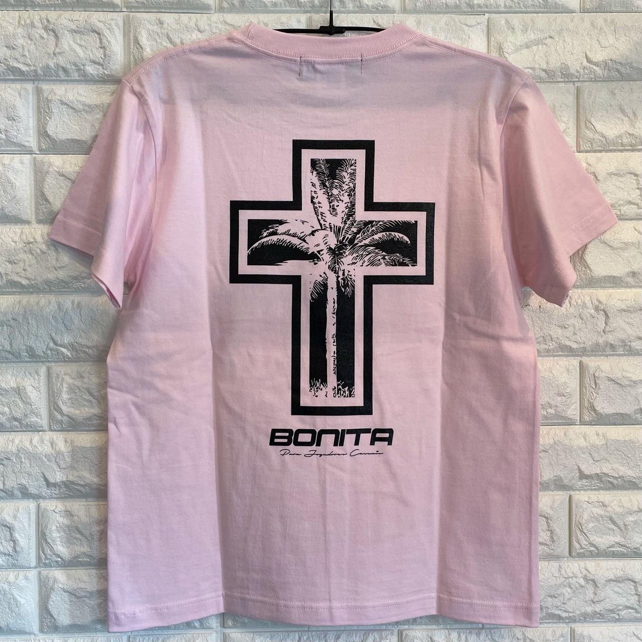 甘めのライトピンクが可愛いCross Logo Tシャツ。ボックスシルエットでゆったりと着られるので、女性らしいシルエットを楽しめます。また、やわらかな風合いの5.6ozの綿100%素材が、着心地バツグン。軽くて通気性も良く、春夏に大活躍の一枚です。